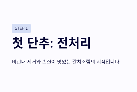 - 취향에 따라 눅진한 스타일 혹은 담백한 스타일 중 선택하여 조리합니다.